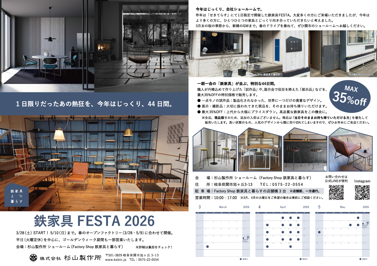 【お知らせ】「鉄家具FESTA 2026」開催のご案内(3/28〜5/10)